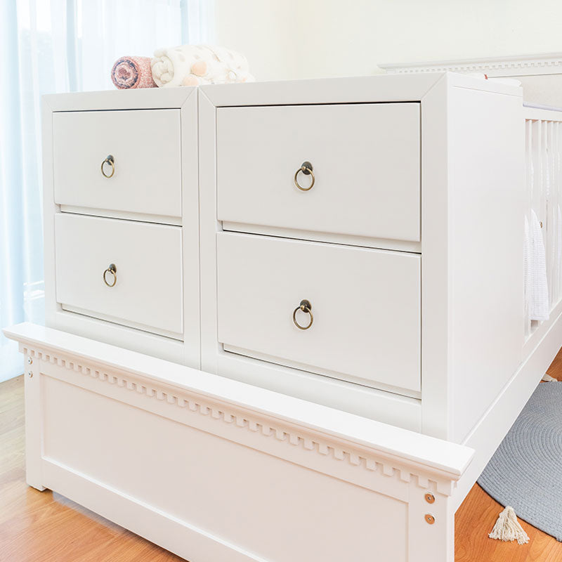 Cama individual: En esta etapa se retiran los 2 buros de enfrente y los barandales para posteriormente convertir la cuna en una cama juvenil con dos cajoneras a los lados.
